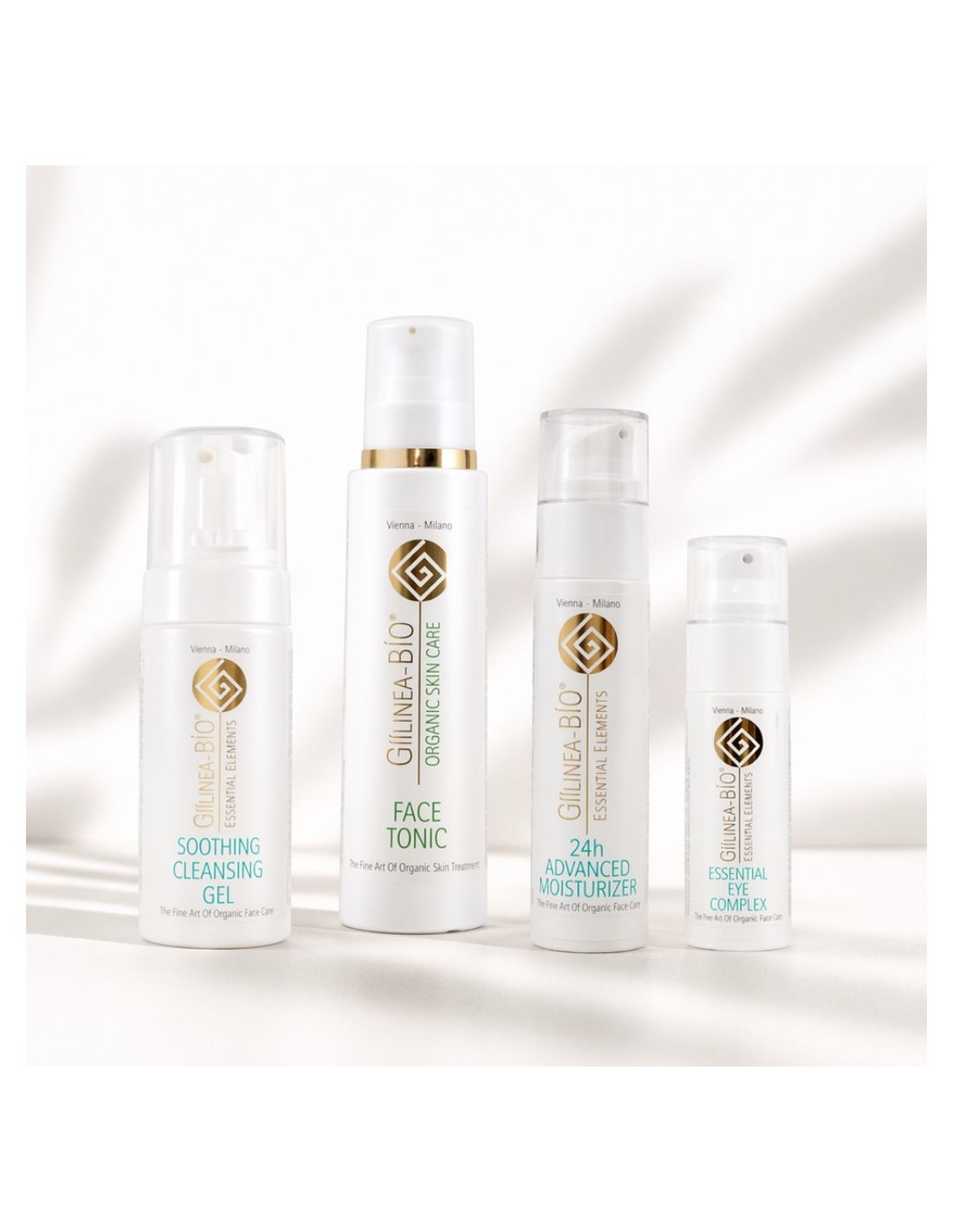 Soothing Cleansing Gel · Face Tonic · 24h Advanced Moisturizer · Essential Eye Complex